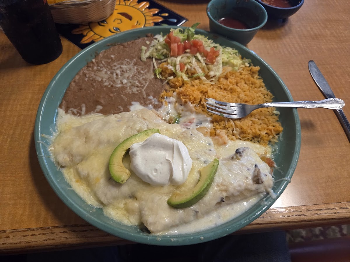Very good AUTHENTIC food. I found a wide variety of selections on the menu that looked pretty tasty. I went with the Chile Colorado plate. The meat was tender, and sauce was seasoned perfectly. The beanz and rice were very good. Four soft and delicious flour torts were provided. I asked for extra hot sauce and peppers. I was not disappointed. The hot sauce was moderately hot, and the peppers were fried and topped with seasoning. I had to get up and walk to the bar to get my drink refilled. It was annoying due to the place being practically empty (it was 3:00 p.m.).
