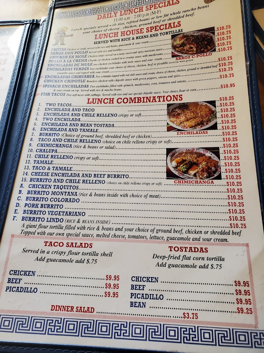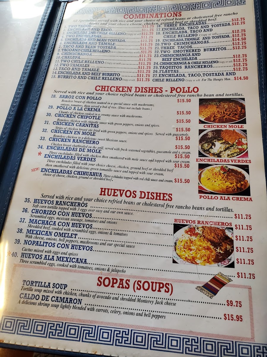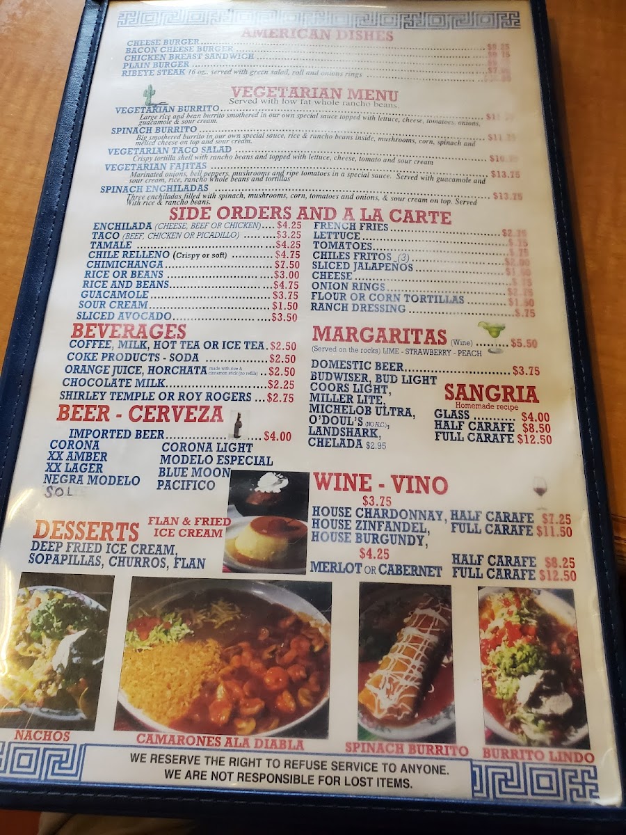 You’ll find a variety of chicken dishes like Arroz Con Pollo and Chicken En Mole, alongside a thoughtful vegetarian menu featuring spinach enchiladas and burritos. Enchiladas come in several styles, including Mole and Chipotle, making it easy to find a comforting plate to enjoy any day of the week. On Thursdays, special dishes like Carnitas De Pollo add a bit of variety to the mix.