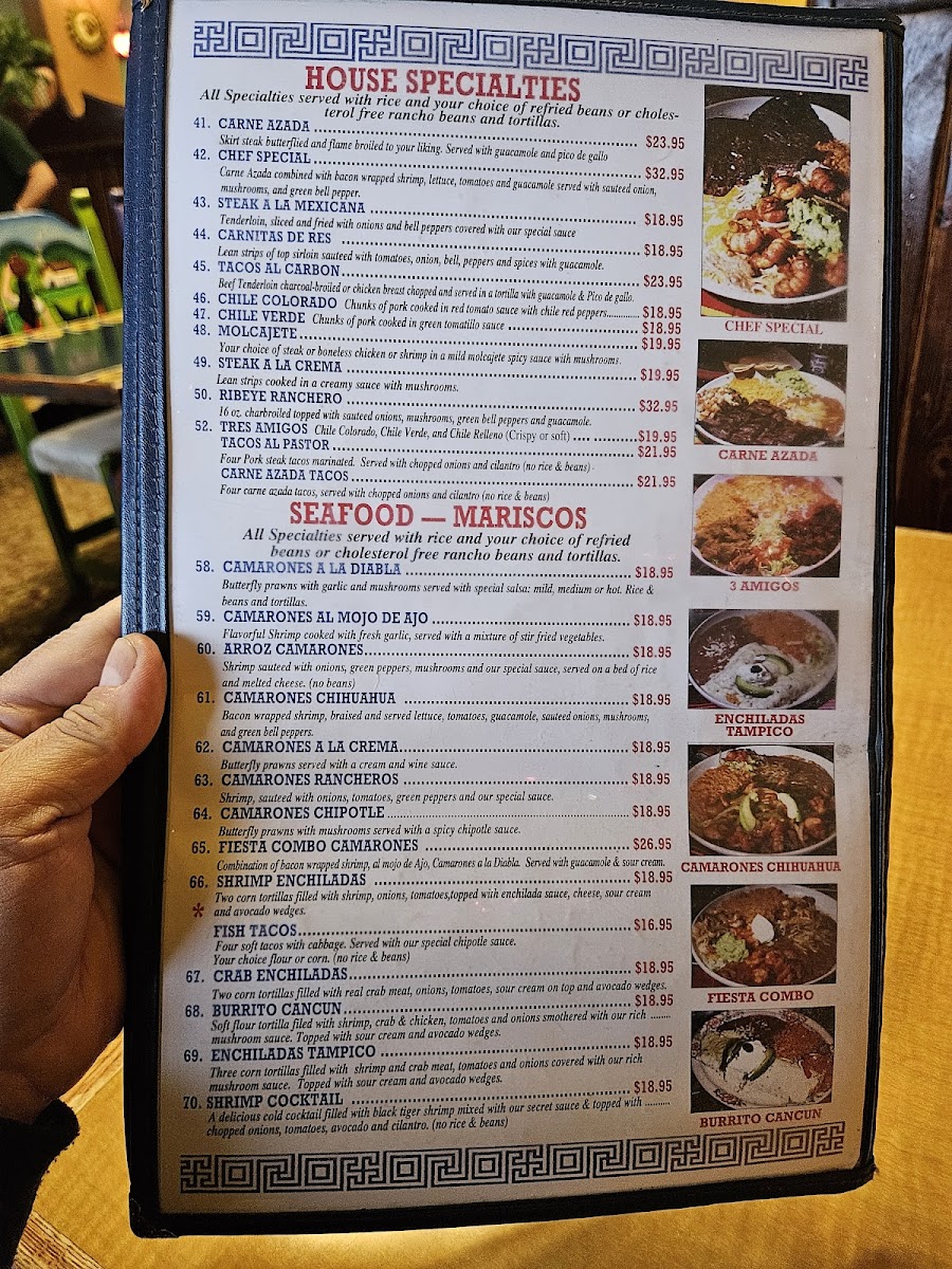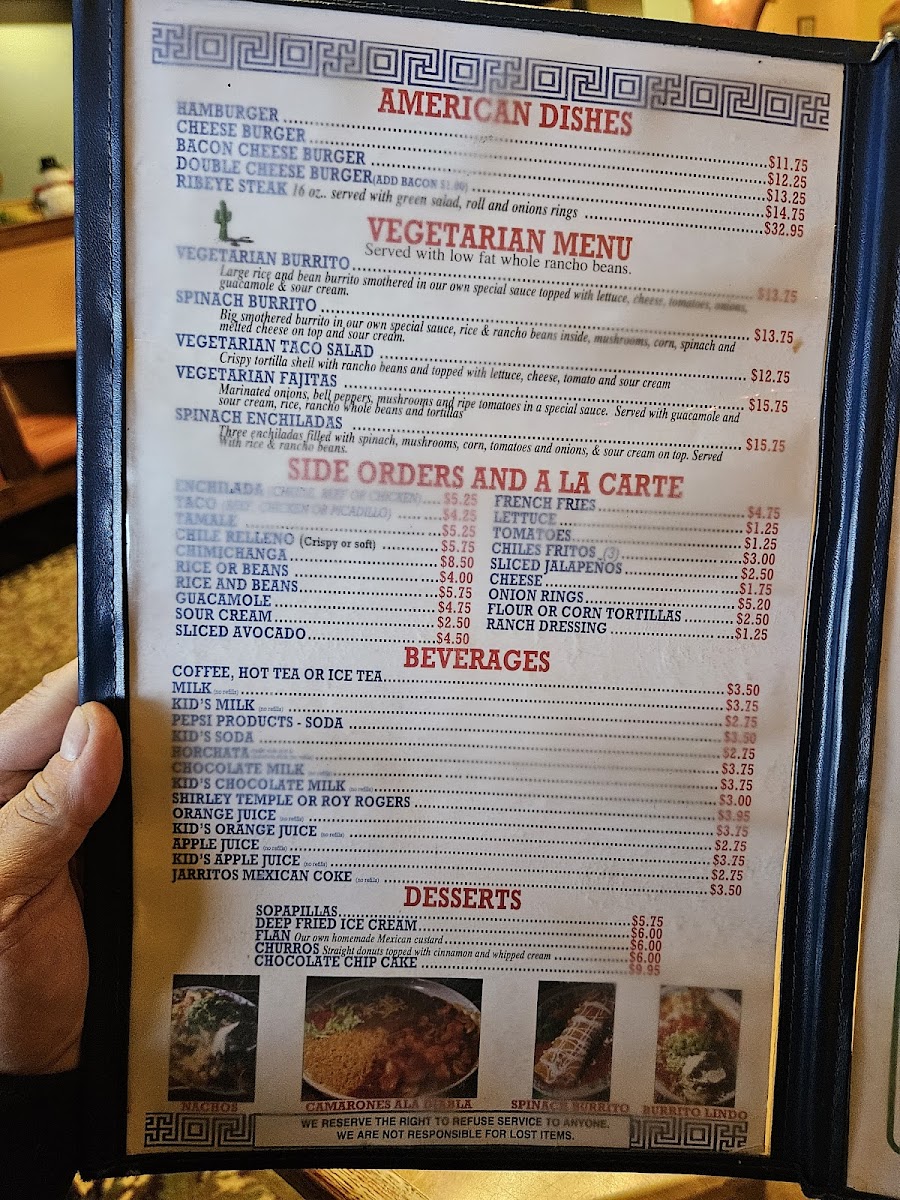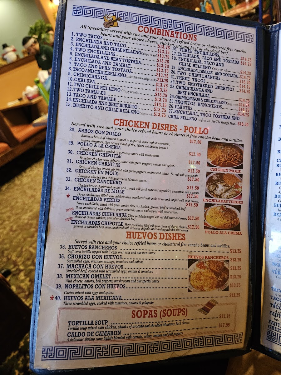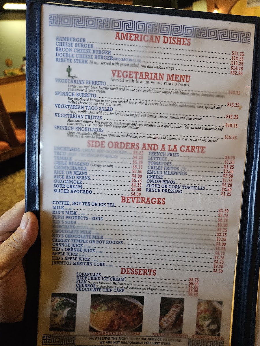 You’ll find a variety of chicken dishes like Arroz Con Pollo and Chicken En Mole, alongside a thoughtful vegetarian menu featuring spinach enchiladas and burritos. Enchiladas come in several styles, including Mole and Chipotle, making it easy to find a comforting plate to enjoy any day of the week. On Thursdays, special dishes like Carnitas De Pollo add a bit of variety to the mix.